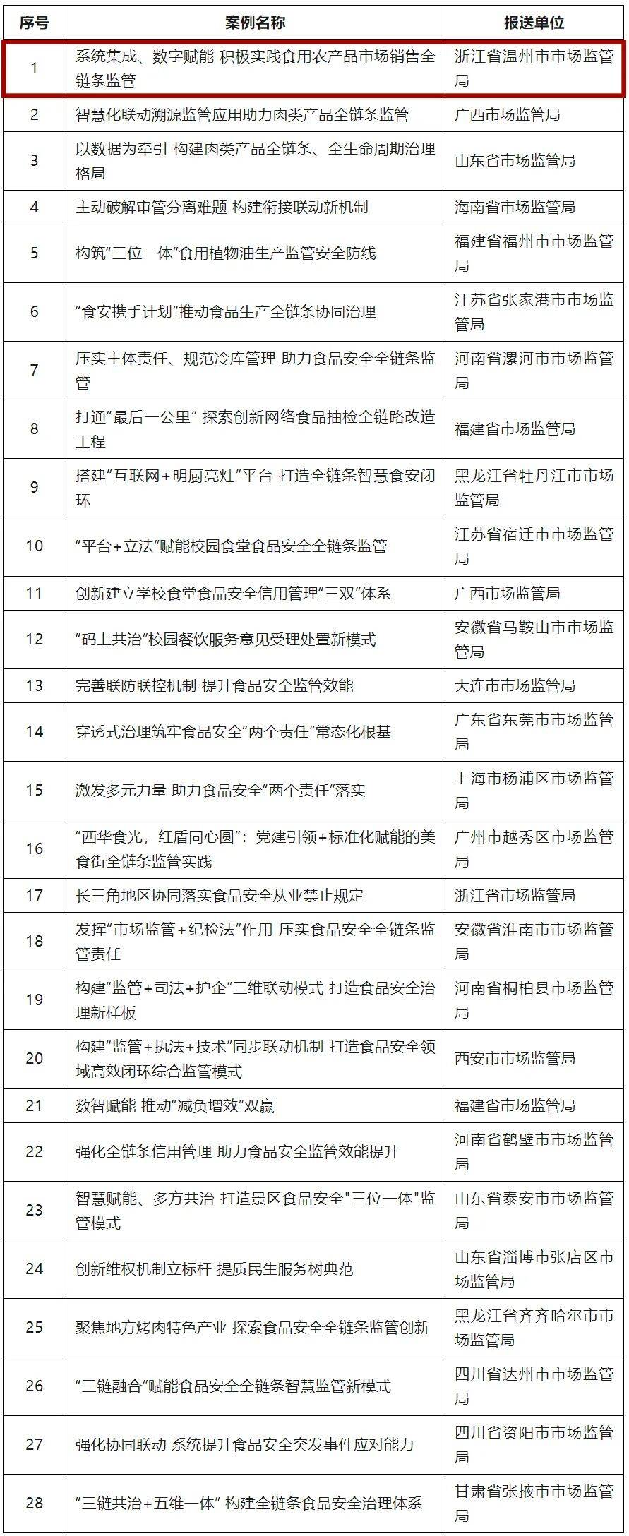 捷报!温州入选2025年食物平安全链条监管立异案