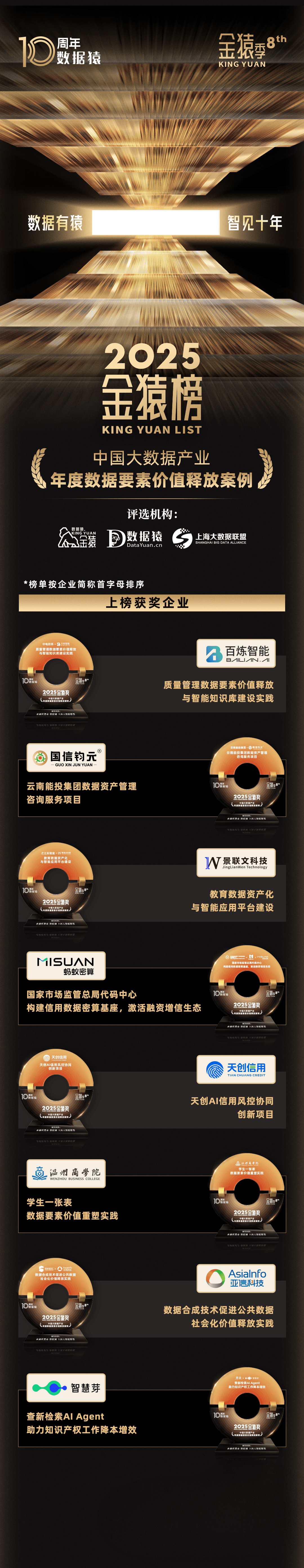 “第八届年度金猿季筹谋勾当——《2025中国大数据财产年度「数据要素价值案例」》榜单/项”由金猿组委会?。